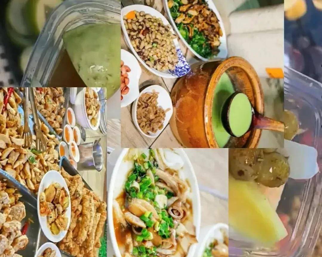 油茶 咸茶菜茶盛行于汕尾地区是老辈们代代相传下来的纯手工制作,隆重又实惠的待客方式之一。亲朋好友上门家访,热情好客的妇女们就要擂茶叶了,有各种各样的擂茶方式,用破壁机来回搅拌捣碎,将煮沸的开水冲入再搭配上一碗茶不可缺少灵魂的花生 芝麻、炒米、口感立马转变。然后还可以看个人喜好加上炒菜、米粉丝、虾米、瘦肉、鱿鱼、各样配料等等。陆续投放入咸茶的碗里,然后主人热气腾腾地端到客人面前,盛情款待一碗接一碗,绝称尚挂友!