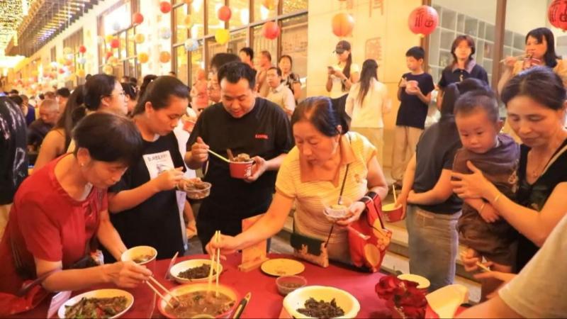 来到美食品鉴区,“南安家宴”品鉴区与长桌宴前早已挤满前来尝鲜的市民游客,阵阵香气在空中萦绕。12家餐饮名店打造的特色家宴桌前,食客们欢聚一堂,目光被桌上精致摆盘的“南安十大碗”与特色菜品牢牢吸引,每一口美食都成了传递温情的纽带,将中秋的团圆氛围推向高潮。(总台记者 范存宝 陈自强)