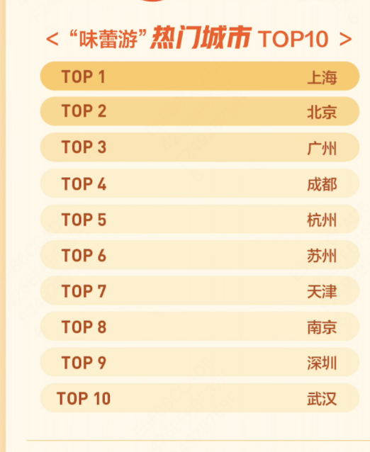 近日,大众点评“必吃榜”发布寻味数据。“十一”假期,“必吃榜”榜单流量整体环比上月增幅接近180%,上海、北京、广州、成都、杭州、苏州、天津、南京、深圳、武汉为“味蕾游”热门城市TOP10;小城小店变身“味蕾游黑马”,一众美食小城榜单流量涨超217%,带动当地上榜小店订单量涨超222%、上榜老店订单量涨超248%,南昌、泉州、珠海、湖州、汕头、南通、嘉兴、台州、扬州、绍兴为热门美食小城TOP10。