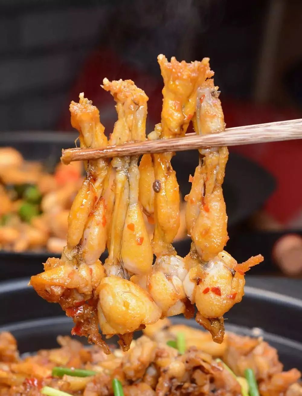 一锅的份量超级足,两个人吃绰绰有余,蛙腿肉十分饱满,满屏都是肉肉肉!,辣椒的色泽诱人,带着辣味渗透到每个蛙肉纤维中,又香又鲜美~