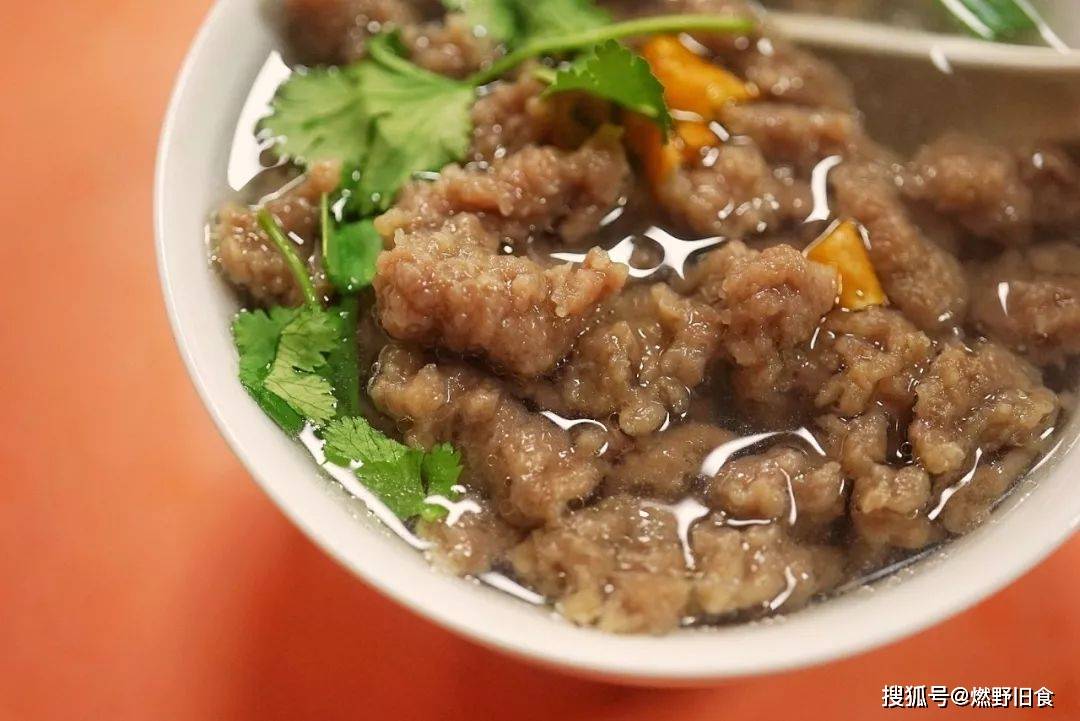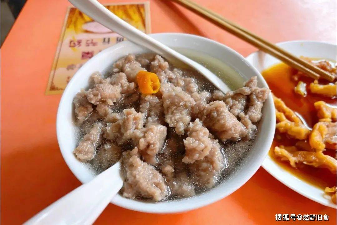 福鼎肉片要把猪后腿精肉剁成细泥,棒打到软糯筋弹,然后加地瓜粉调味。肉片都是现点现做,一碗肉片舀起来,QQ弹弹,吃上一口肉片爽口弹牙。