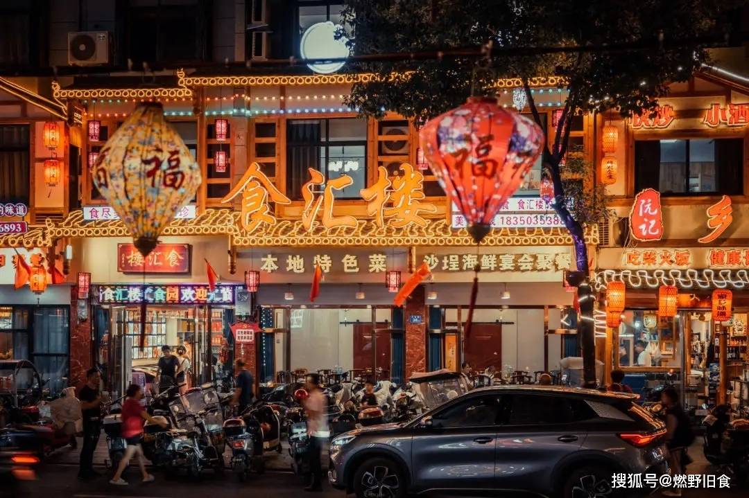 到了晚上,美食街沿着溪水两边的灯都打开了,你可以买点小吃端在溪边,边吹着凉风,边吃着当地的美食,实在惬意。