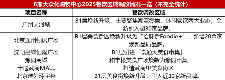 具体到实际项目中,无论是高端商场还是大众化项目,都在积极通过餐饮区域的调改,提升线下吸引力与市场竞争力。
