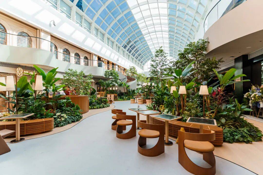 不止存量项目通过调改餐饮区域寻求突破,今年新开的购物中心也在以更前置的方式强化餐饮内容布局,且普遍倾向于融入自然绿意元素。例如,上海陆悦天地的木星超食空街区,以“绿洲”为理念,通过大量绿植和开放式休息区,营造出自然闲适的用餐氛围;西安长乐天街则在4层通过绿植造景与内退式外摆,打造出通透开放的高街餐饮社交场。