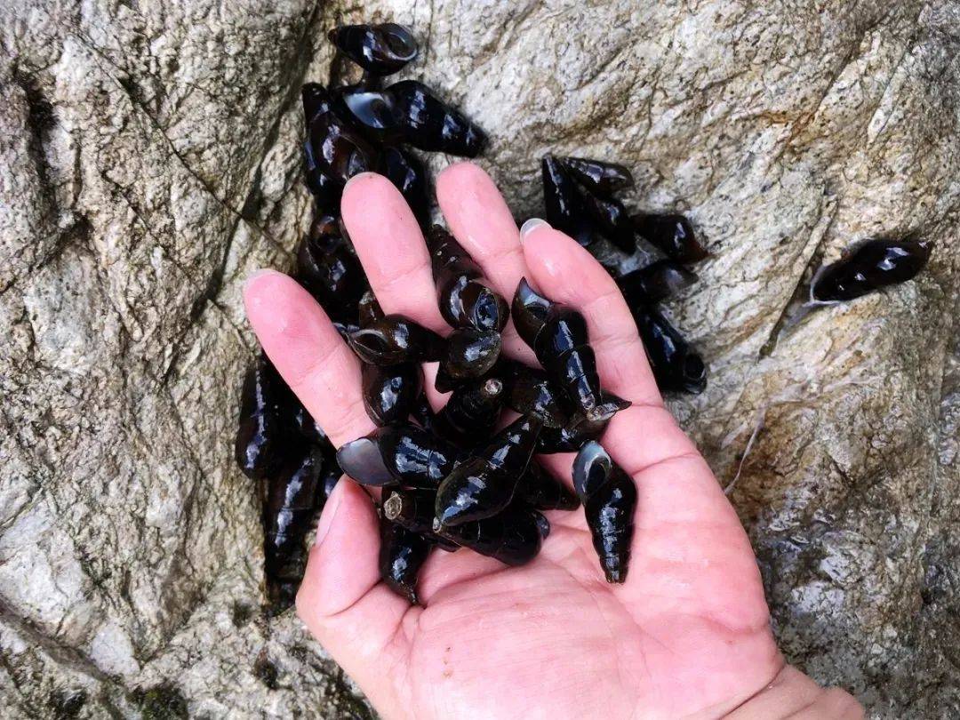 跟常见的田螺不一样的是石螺生活在深山小溪中,昼伏夜出,只有水源干净无污染的地方才有,平时吸附在水中的石缝或石块上,以石头上的微生物和小型藻类等水生植物为食料。一般个体略比手尾指大小,便可捡而煮食,大者有如拇指。