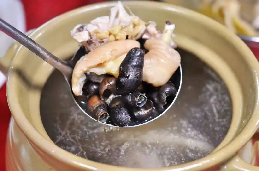 另一吃法是石螺煲鸡汤,处理好后的石螺放入砂锅,下少许鸡块、生姜,待煲至两三个小时后,其味鲜美无比,其香味沁人心脾,令人食欲大增,多食不厌,真乃山珍也。