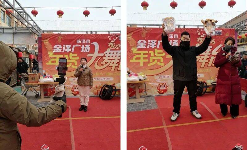 “听到喇叭声过来看看,没想到真有这样的好事。”一位刚套中一瓶酒的乡亲张英难掩喜悦,“工作人员帮我下载了抖音,关注临泽金泽广场抖音号后给了两个圈,一下子就套中了!这年货领得太值了。”