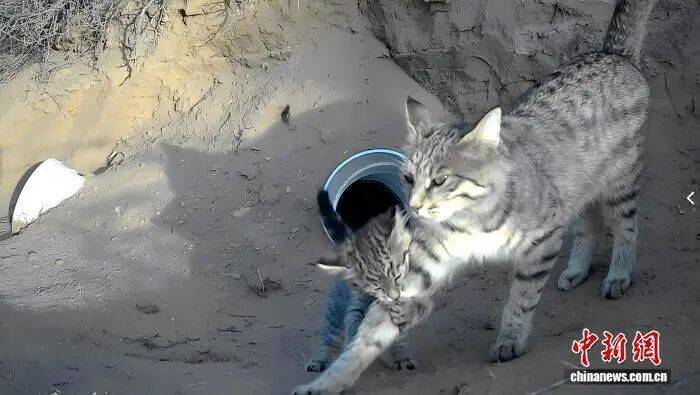 1月7日,临泽县北部沙区通过红外相机记录到亚洲野猫在洞穴周边嬉戏打闹。临泽县融媒体中心供图