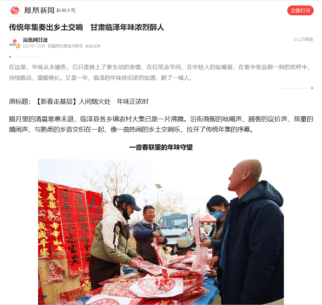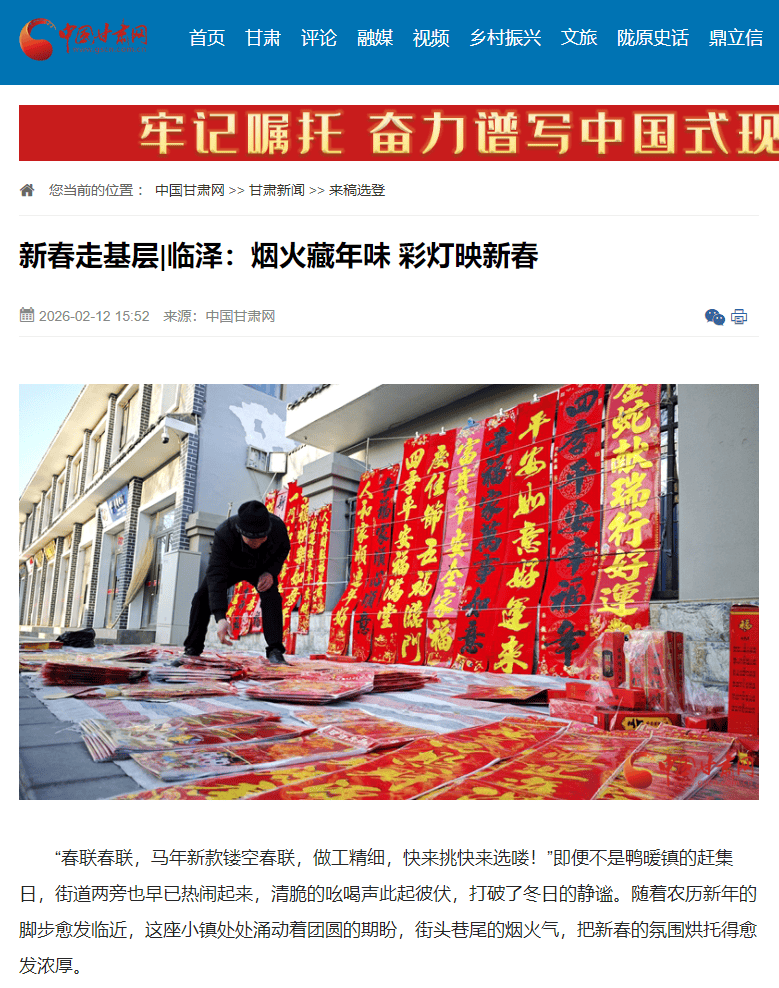 采访归来,最深感触是:年集像一个微缩的乡土中国。它既有厚重的传统肌理,又在自然地吐故纳新。在这里,年味从未褪色,它只是换上了更生动的表情,在红纸金字间,在年轻人的吆喝里,在套中奖品那一刻的欢呼中,持续跳动、温暖绵长。又是一年,临泽的年味依旧浓烈如酒,醉了一城人。(临泽县人民政府官网)
