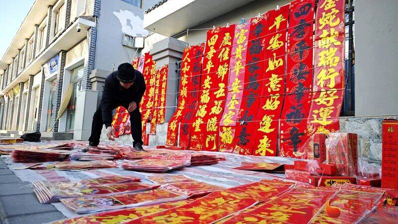 步入集市,“春节红”便扑面而来。对联摊位前,宋玲花用冻得微红的手,将一沓春联仔细铺平。红纸金字在冬日的阳光下泛起温润光泽,像一小团一小团安静燃烧的火苗,温暖着整个清晨。
