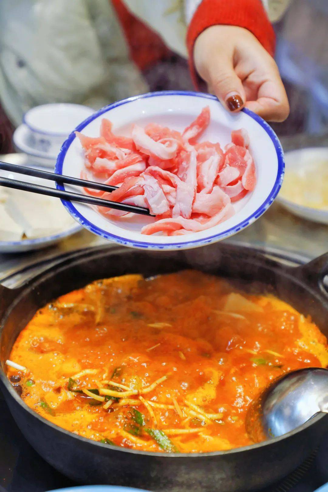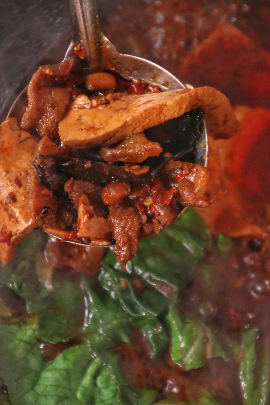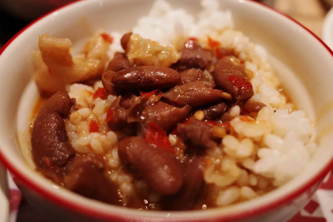 和上文的豆米火锅不太一样,如果豆米火锅是清汤,那么可以称红豆牛肉火锅味麻辣。和其他火锅相比,它也显得略微“小众”。