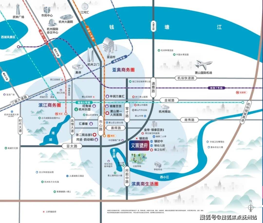 文宸望府项目择址所前镇芯,周边市心路、通惠路、时代大道、风情大道四条黄金主干道,2KM地铁朝阳站(直线距离)多维交通便捷出行。经通惠路直达萧山银泰百货,近享万象汇、银隆、旺角城等城市繁华商圈,一站式吃喝玩乐购。