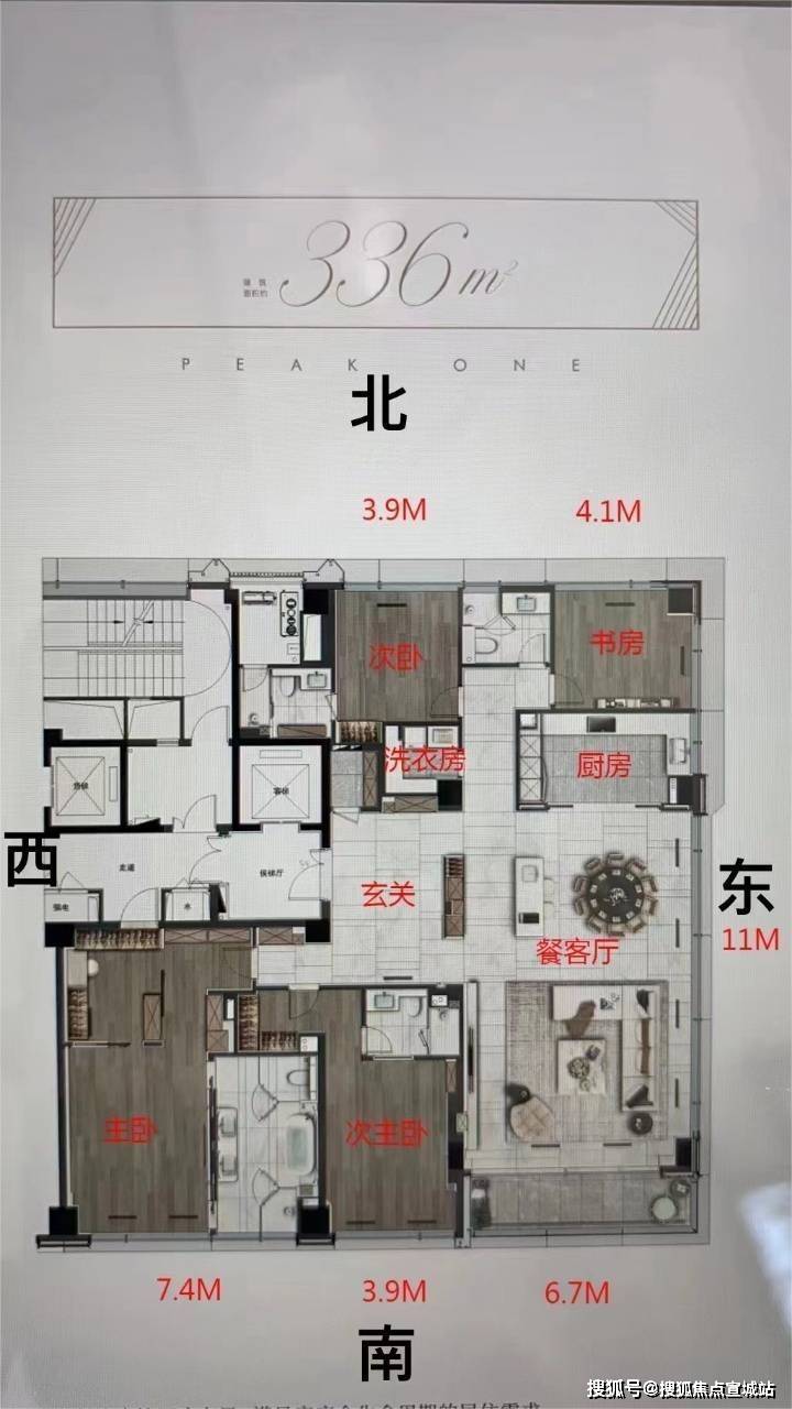 ❶首开3号楼,东边套336㎡四房、西边套340㎡四房,顶楼430㎡,户户带12平阳台