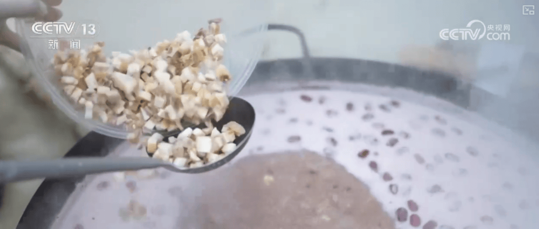 与传统腊八粥不同的是,当地在制作腊八粥时,还将种植的中药材桔梗和地方名小吃——片粉加入其中,满足不同口味的需求。