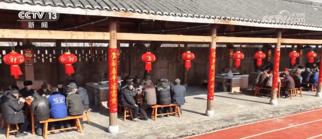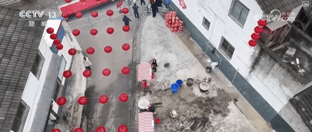 早晨,在安徽无为市无城镇黄汰村,红灯笼高高挂起,精选的食材摆放在大锅的灶台旁,村民已经开始熬制今年腊八节的腊八粥。