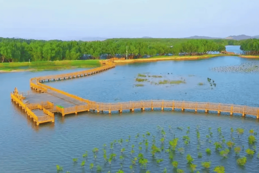 主要特色:在义丰溪出海口的红树林面积近2000亩,景观带达十几公里,无瓣海桑群落伴着少量桐花树、秋茄、卤蕨等本地红树林种类,不仅构筑了沿海绿色生态屏障,还孕育了候鸟天堂,无数白鹭、红嘴鸥、青头潜鸭、翠鸟、黑腹滨鹬在这里生活繁衍,形成了一个完整的生态系统。湿地还建设有科普教育径(一级园路)、林下栈道、飞栈、管控门廊、驿站、厕所、堤顶路、观鸟塔等设施,是集参观、拍摄、学习、休闲于一体的自然生态旅游休闲胜地。